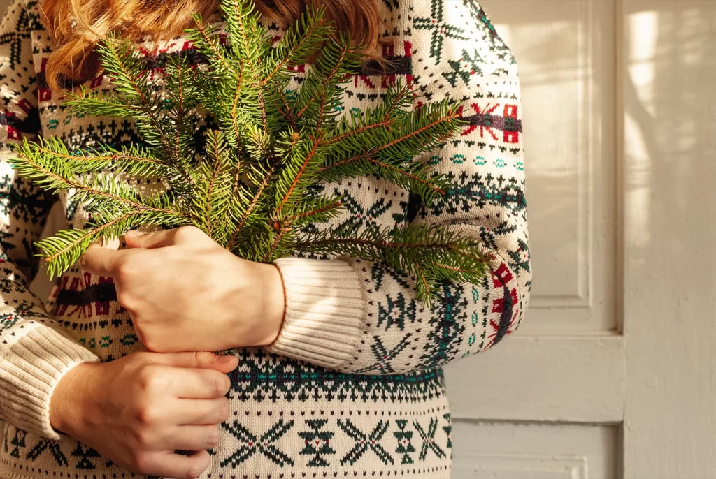 - Pine branches and cedar springs — Cuttings from evergreen trees provide a lush and fragrant backdrop to your holiday display.